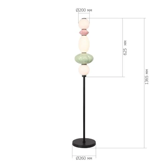 Артикул: SL6134.405.01; Бренд: ST Luce; Коллекция: FLORENTINI; Стиль: Modern; Товарная группа: Напольные светильники; Степень защиты: IP20; Общая мощность, W: 20; Площадь освещения, м2: 7; Количество ламп: 1; Тип ламп: LED; Тип цоколя: LED; Мощность ламп, W: 20; Световой поток, Lm: 2142; Цветовая температура, K: 3000K; Материал каркаса: Металл, металл; Материал плафона: керамика / стекло; Цвет каркаса: чёрный, Черный, черный, Чёрный; Цвет плафона: розовый, зелёный, опаловый; Лампы в комплекте: В комплекте; Гарантия, мес: 36; Диаметр, мм: 260; Штрихкод: 4657820352879